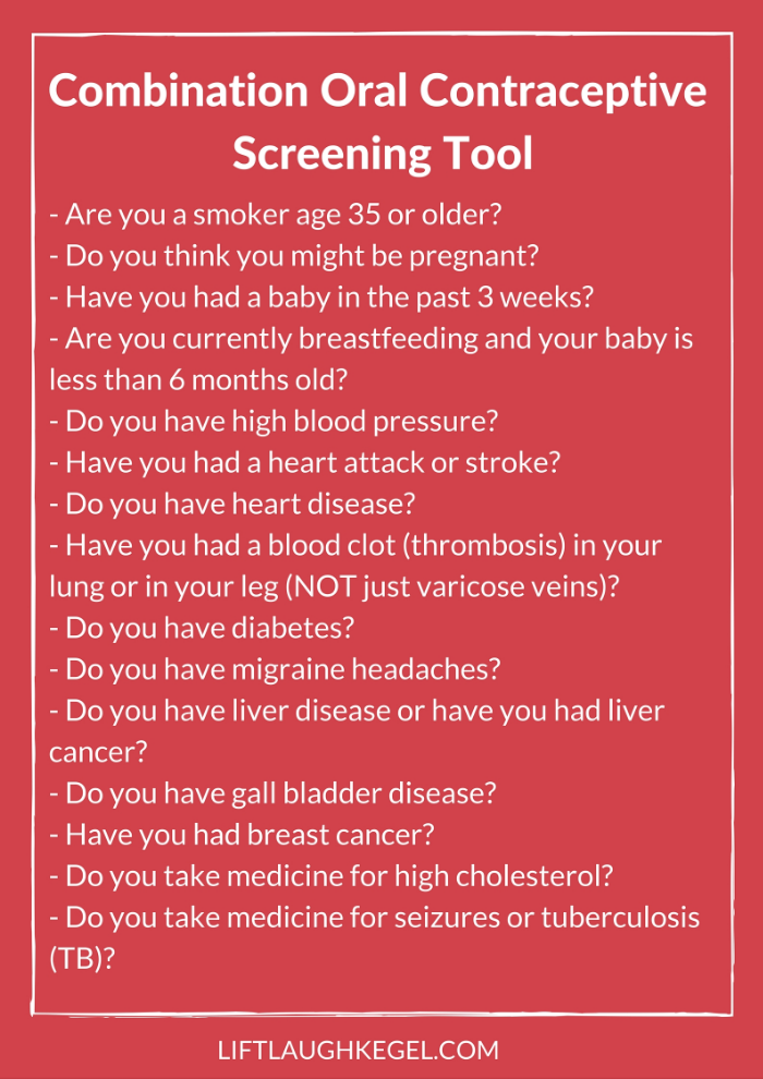 This screening tool is based on the World Health Organization's grade 3 and 4 contraindications to starting combo type birth control pills.