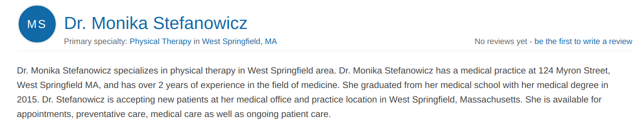 If you actually go to those sites you can find my license number, which allows you to check that I am in fact a licensed provider in Massachusetts. I’m keeping my PT license active in that state, but I haven’t practiced there in over a year. At best you have found out that I’m a physical therapist who has not had any malpractice claims. It doesn’t tell you anything about how I practice, what cases I treat, or more importantly what your outcomes are likely to be if you see me.
