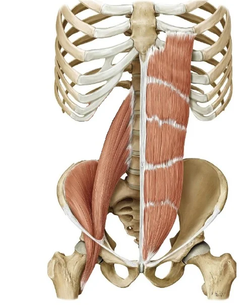 Iliopsoas is the muscle on the left. This guy is responsible for bending your hip (hip flexion). See how it crosses your hip joints and passes under the lower 1/2 of your abs? That's the muscle you feel working during those leg lowering exercises!